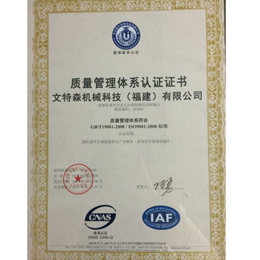質(zhì)量體系證書
